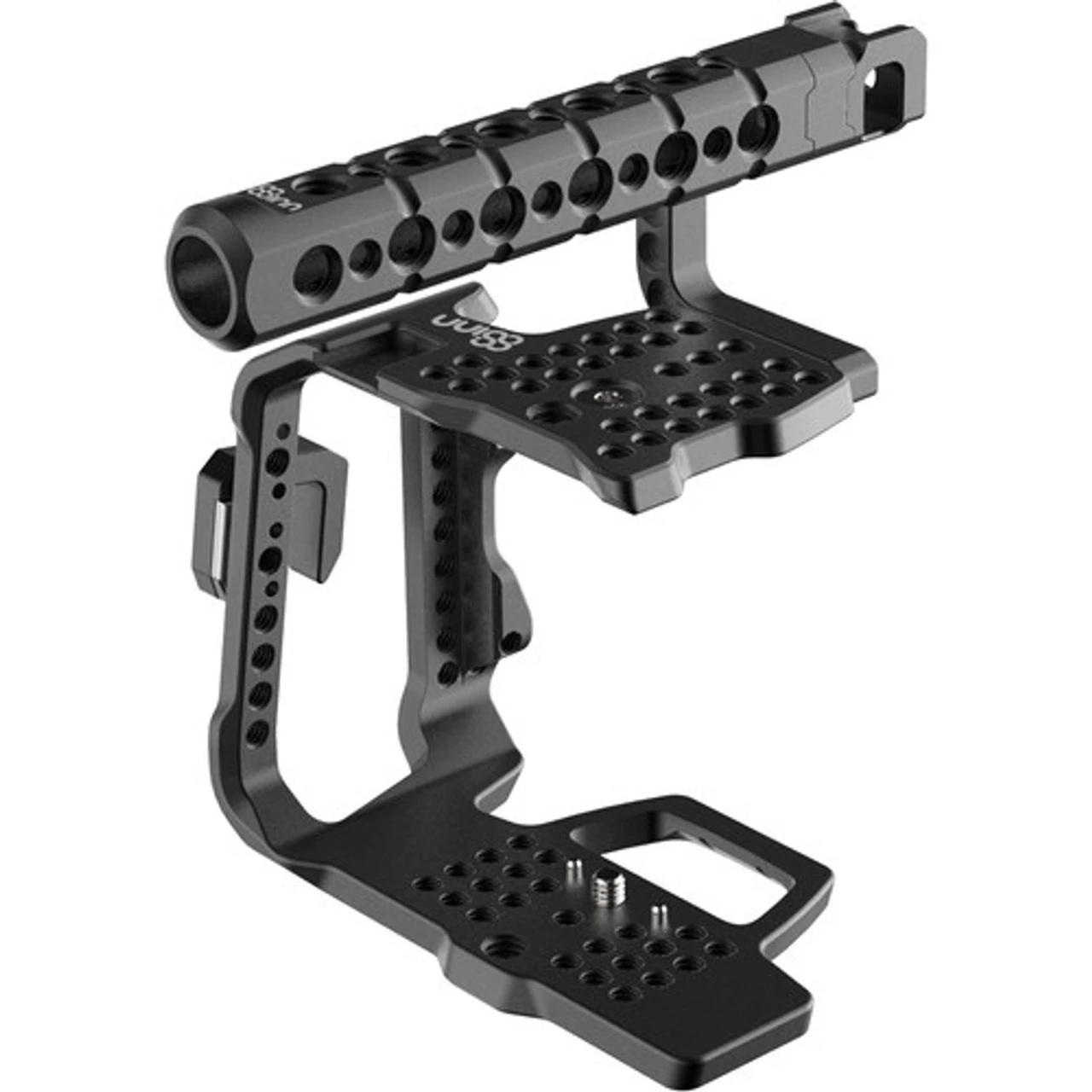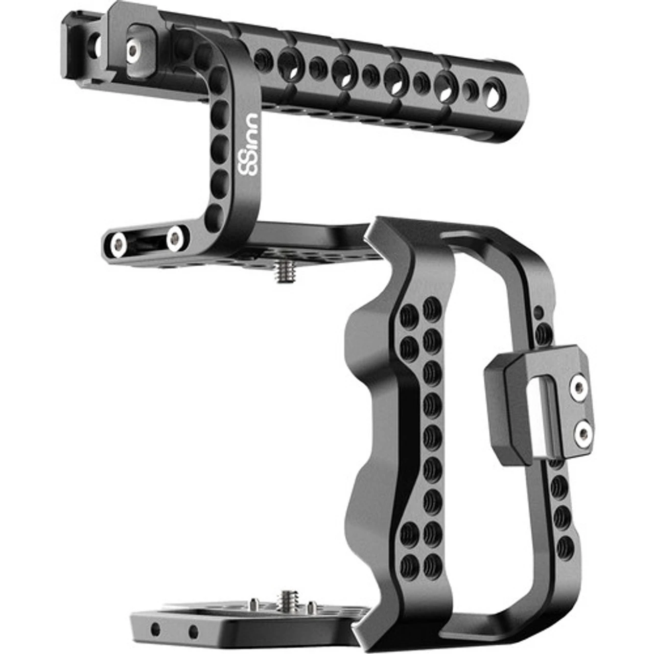 Access to all camera functions as well as battery and media doors is guaranteed as the half cage leaves the right side of the camera exposed. In addition to the 1/4″-20 mounting holes, a single 3/8″-16 threaded hole is included in the top of the half cage for additional accessory mounting, and multiple M4 threaded holes are tapped into the front of the top plate to enable mounting the 8Sinn Top Handle Basic to the half cage in either forward- or rear-facing direction.