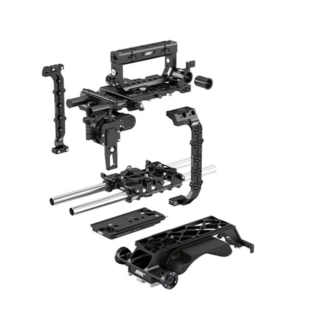 This updated ARRI Pro Set for Canon C300 Mk III/C500 Mk II provides comfortable shoulder support and versatile accessory mounting options including right- and left-side brackets. This set also includes a CCH-4 top handle with a sliding adapter, a top plate, an MVB-1 EVF bracket, a shoulder mount baseplate with VCT-14 support, a BPA-5 Bridge Plate Adapter, and a pair of 13″ lightweight, stainless steel 15mm rods.