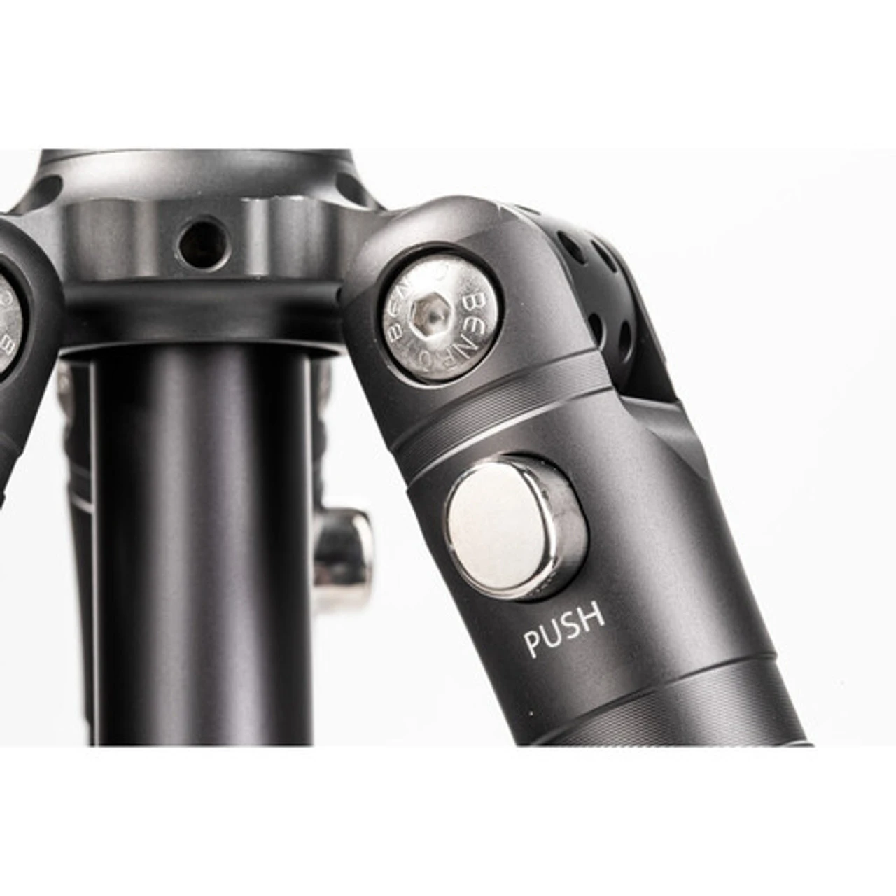 The Bat Zero Series Aluminum Travel Tripod with VX20 Ball Head from Benro is a compact, lightweight tripod with a high load capacity and remarkable stability. The legs offer independent positioning with 5 available preset leg angles, allowing the legs to be placed in more positions that traditional tripods are capable of. The legs are also reversible for inverted shooting and compact storage and travel. The auto-hold leg position trigger makes adjusting the tripod leg angles quick and easy. The aluminum leg spider features three 1/4″-20 accessory mounts for attaching accessory extension arms, monitors, lights, and more. The rubber feet feature three distinct contact surface providing a grip whether the legs are vertical, on an angle, or nearly horizontal when positioned.