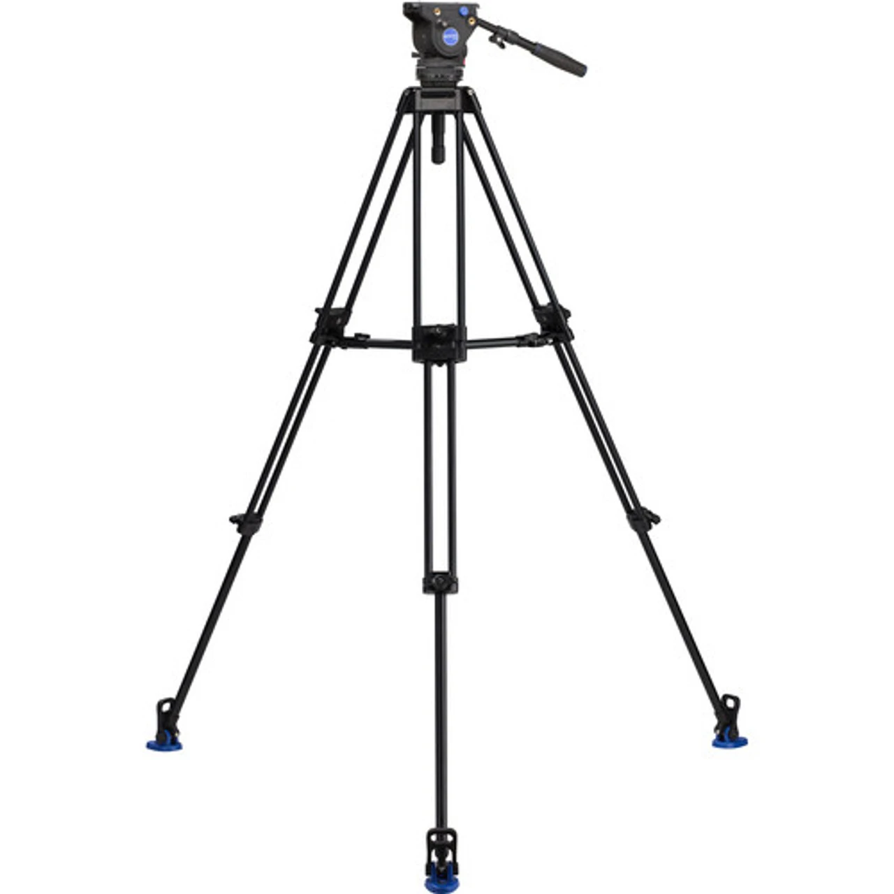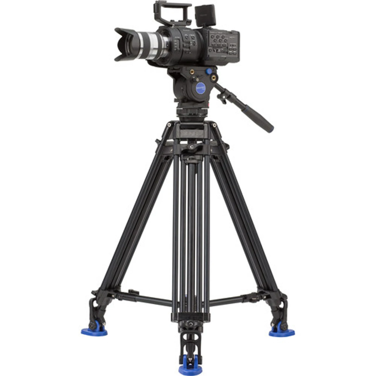 The Benro BV4 Pro Video Tripod Kit Includes a Benro BV4 head and a 2-stage/3-section tripod with removable mid-level spreader. The system can support cameras and accessories up to 8.8 pounds and features a 75mm ball/bowl fitting for stability. The head features a 6-step (1 to 5 plus 0) counterbalance system to dials in the correct amount for your setup, and independent 4-step (1 to 3 plus 0) pan and tilt drag settings for precise control over camera movements. A Manfrotto 501/504PL compatible sliding quick release plate is provided, making it easy to set the balance point for your gear. The 2-stage, 3-section twin leg aluminum tripod incorporates a 75mm bowl and offers sturdy support for the BV4 head. It features oversized quick positive leg locks for simple and fast setup, an adjustable/removable mid-level spreader, and dual spiked feet with removable rubber pads. The tripod system extends to a maximum height of 63″, while getting as low as 31.7″. A carry case and shoulder strap are included. Key Features Supports up to 8.8 lb Six-step (0 to 5) counterbalance Removable tie-down stud to convert to flat base head Independent four-step (0 to 3) pan and tilt drag -75_ to +90_ Tilt range Manfrotto 501/504PL compatible sliding plate Two 3/8″-16 accessory threads for mounting accessories, such as a monitor or recorder Bubble level The legs feature dual spiked feet that provide solid purchase in soft surfaces when the legs are spread wide or extended to full height. The removable mid-level spreader allows you to work on uneven terrain, such as stairs or rocks, while preventing the legs from flying apart. When using the mid-level spreader you can use the included rubber feet to protect delicate surfaces from the tripod’s foot spikes. SPECS Load Capacity 8.8 lb / 4 kg Head Fitting 75 mm Bowl Counterbalance 6-Step (0 to 5) Pan Drag 4-Step (0 to 3) Tilt Drag 4-Step (0 to 3) Panning Range 360_ Tilt Range -75 to +90_ Height Range 31.7 to 63″ / 80.5 to 160 cm Quick Release Plate QR13 (Manfrotto 501/504PL compatible) Accessory Mounting Threads 2 x 3/8″-16 Weight 13.2 lb / 6 kg Packaging Info Package Weight 19.0 lb Box Dimensions (LxWxH) 39.0 x 9.7 x 9.5″