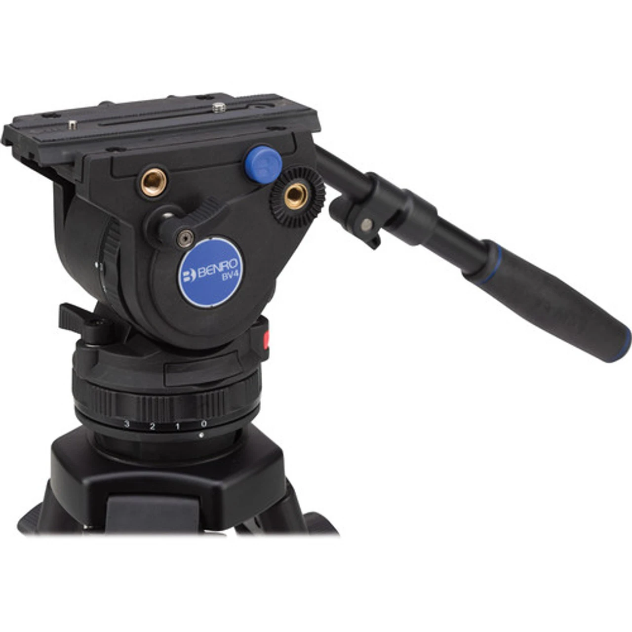 The Benro BV4 Video Head is designed for use with 75mm bowl tripods and supports loads up to 8.8 pounds. It features a 6-step counterbalance system to dial in the correct amount for your set-up, and independent 4-step pan and tilt drag settings for precise control over camera movements. A Manfrotto 501/504PL compatible sliding quick-release plate is provided, making it easy to set the balance point for your gear.