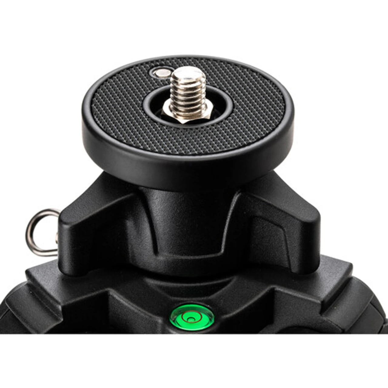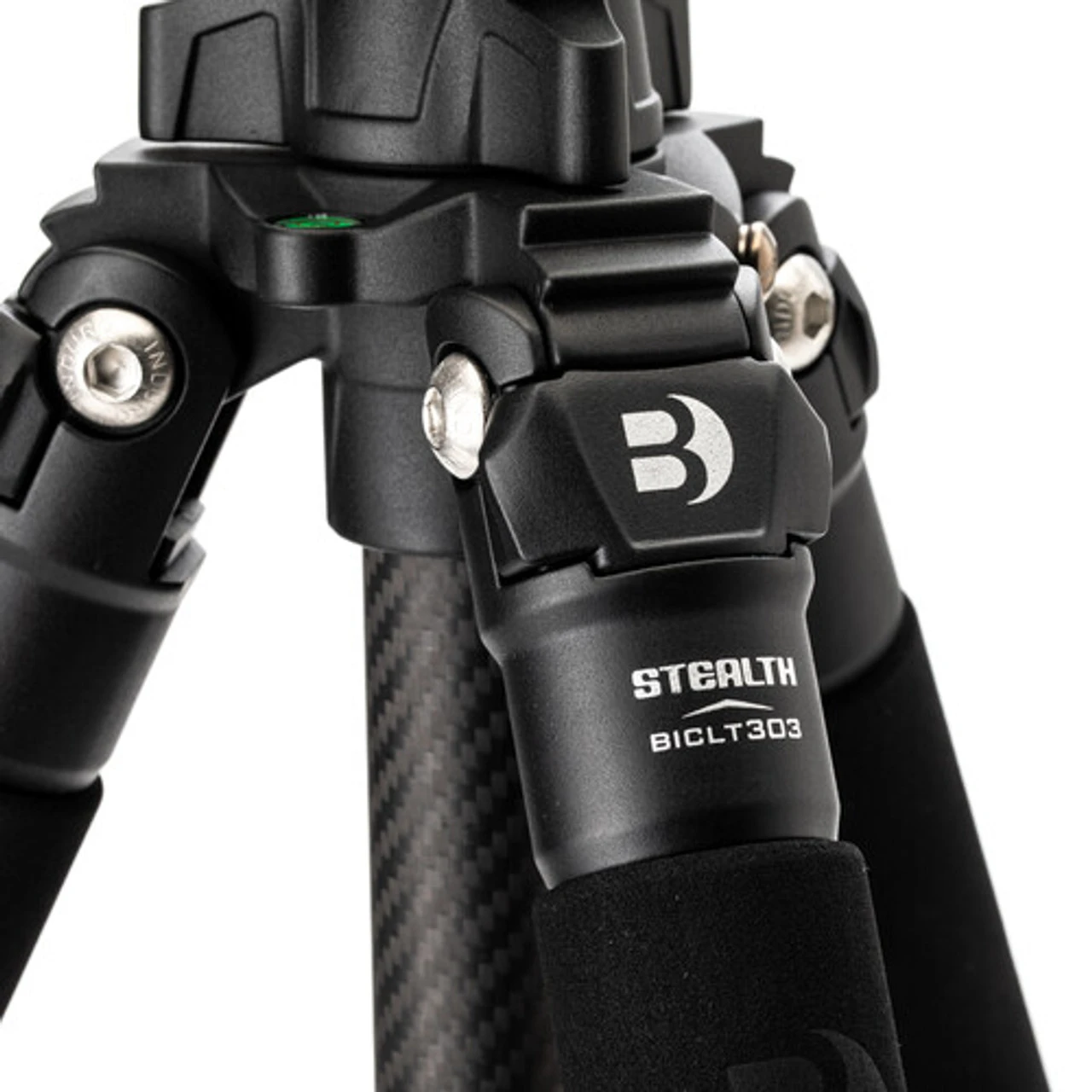 The ergonomic, rubber-covered twist-lock joints are dust resistant and oversized, so they easily fit the hand, even while wearing gloves when the cold weather hits. Engineered for stability at any angle, the three-stop adjustable leg locks and independent leg spread provide lower angles and maximum stability. The adjustable legs and bubble level allow easy and accurate leveling on uneven terrain. The oversized center column lock makes it easy to secure the short, grooved column in any vertical position and even allows the camera to be positioned as close to the ground as possible. Additionally, this 3-Series leg set folds down to an impressively compact 25″ for easy transport and storage.