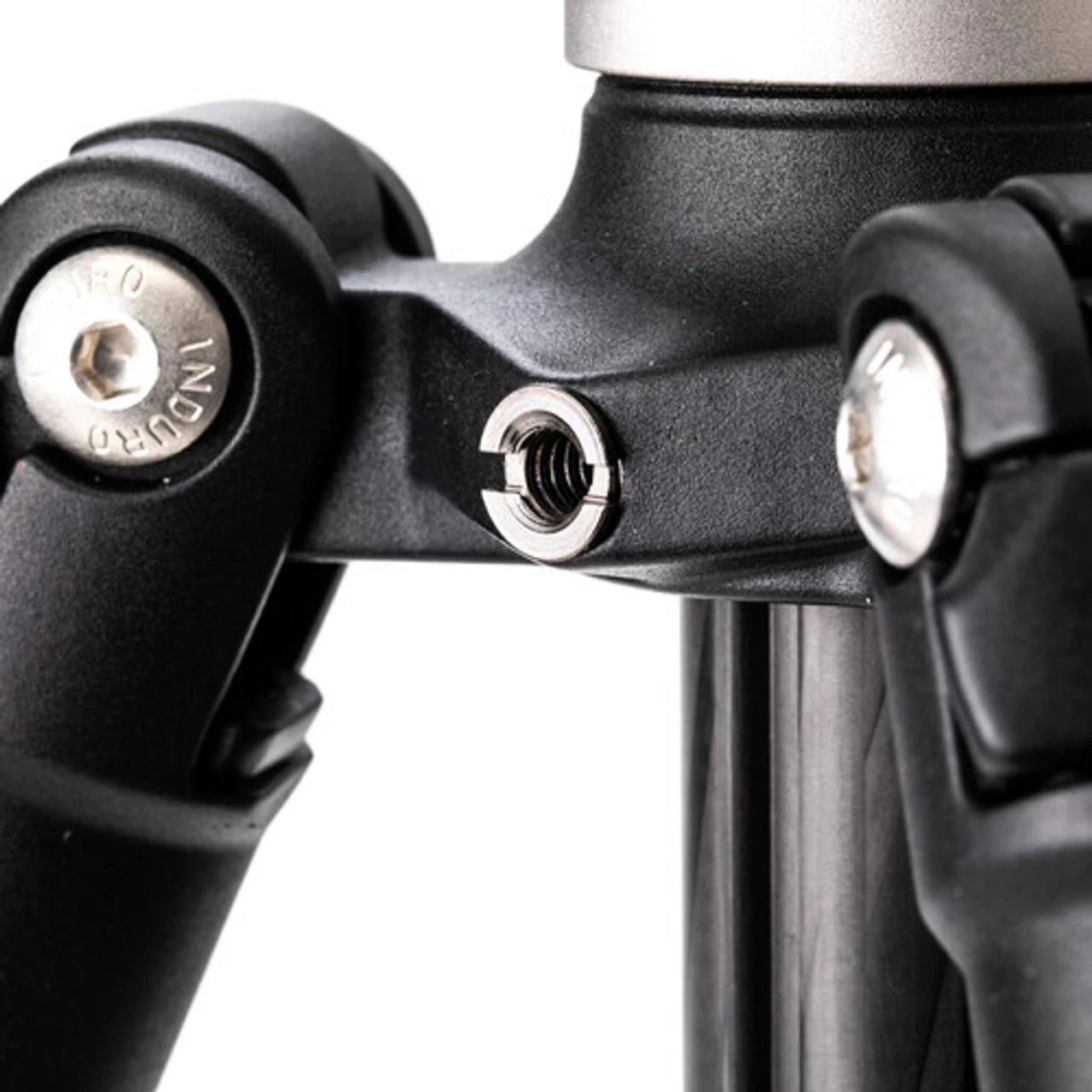 Engineered for stability at any angle with three-stop adjustable leg locks, and independent leg spread, provides lower angles and maximum stability. The built-in bubble level helps maintain a level shot, while the attached ballast hook helps maximize your tripod’s stability. The CNC-machined oversized center column locking collar makes it easy to secure the center column in any vertical position.
