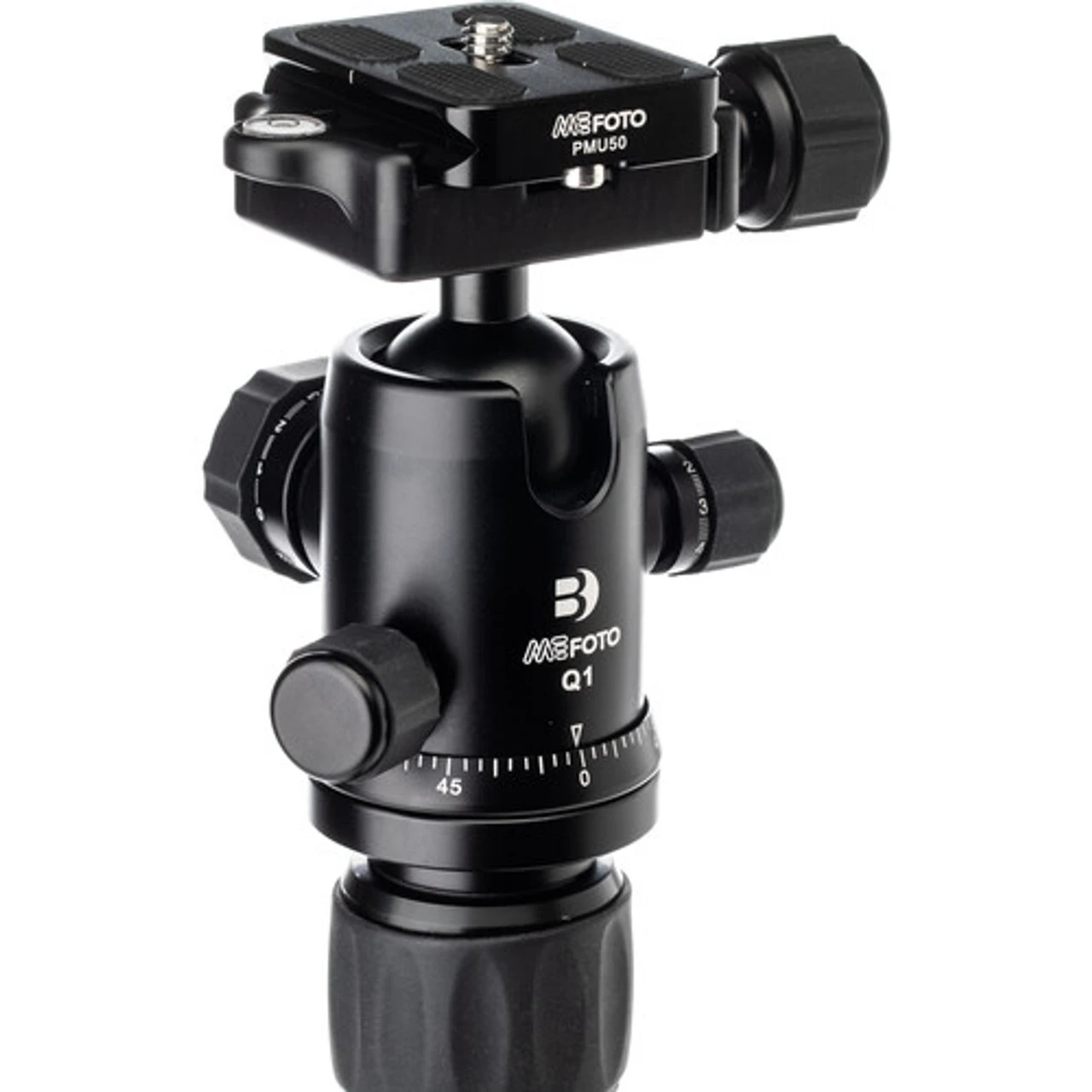 Q1 triple-action heavy duty ball head with Arca-type compatible quick release plate.