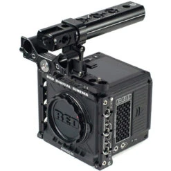 The top rail and side plates feature integrated NATO rails and multiple 1/4″-20 and 3/8″-16 accessory mounting threads to add optional side handles, top handles, monitor mounts, or extension arms. The top handle also features multiple 1/4″-20 and 3/8″-16 threads as well as a shoe mount, and it can slide back and forth to adjust for balance. The 15mm LWS bracket mounts upright or inverted onto the top handle, allowing you to utilize optional 15mm rods to mount additional accessories such as a follow focus motor, EVF, or wireless transmitter.