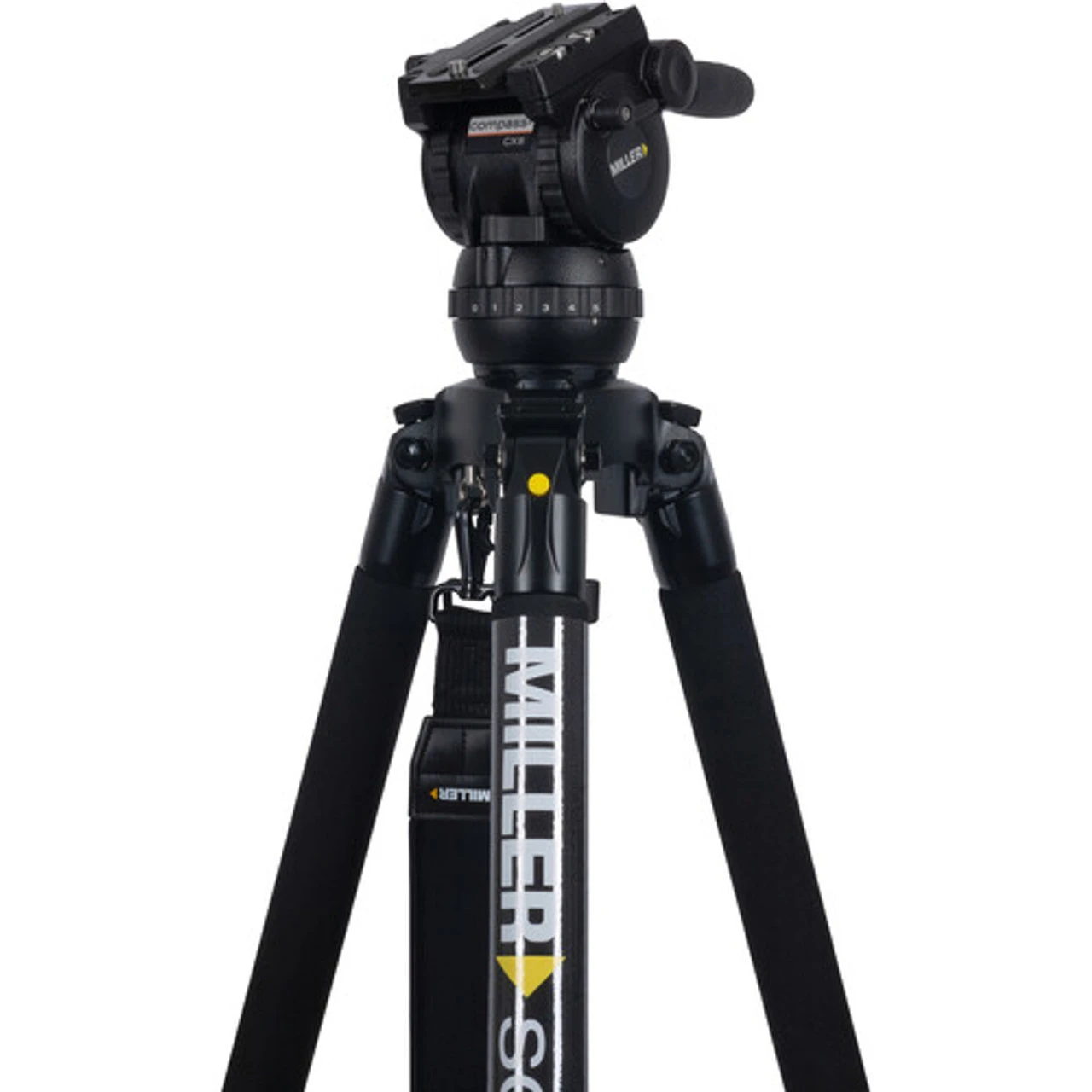 The Miller CX8 SOLO-Q 75 3-Stage Tripod is a compact and lightweight tripod system that brings smooth yet precise pan and tilt control to cameras and rigs weighing up to 26.4 pounds. It features the CX8 fluid head, carbon fiber legs, a carry strap, and a tripod bag for storing and carrying all your gear.