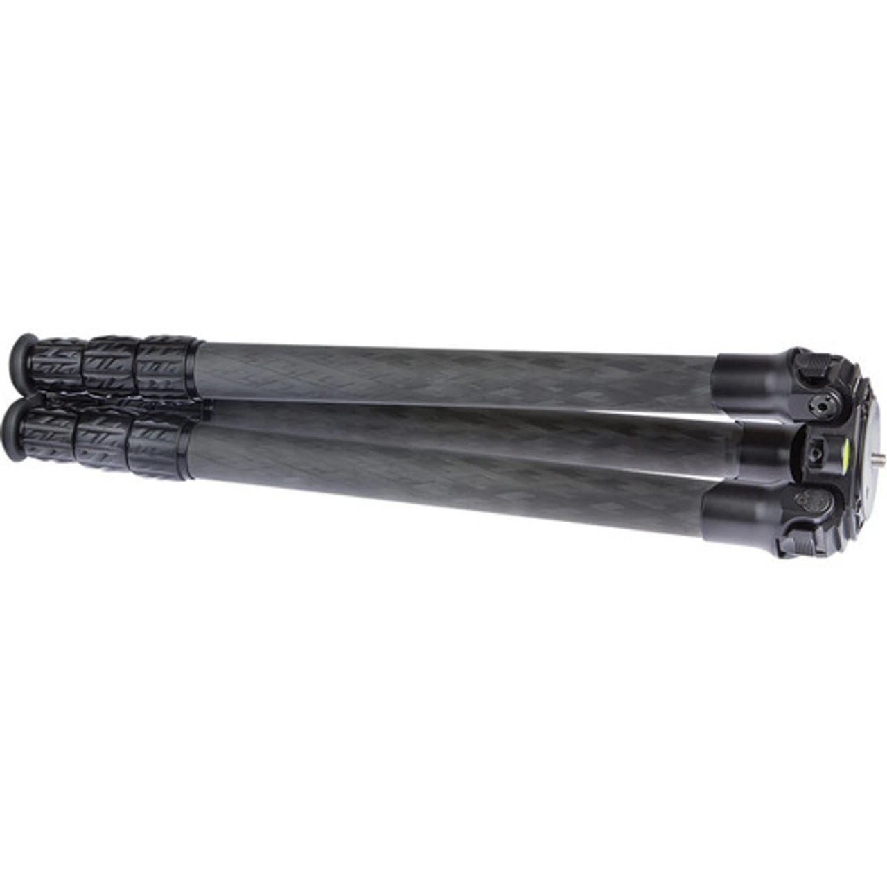 This TR343L 34mm Series 59″ Pro-Stix Carbon-Fiber Tripod from ProMediaGear supports up to 60.0 lb, measures 25.1″ when folded, and includes a tripod top plate with a 3/8″-16 mount. Each of its 3-section legs has a maximum diameter of 34mm. They also feature an independent spread, a 3-position angle lock, quarter-turn twist locks for rapid deployment, and a rubber foot to enhance stability on a wide variety of surfaces. Together, the three legs can be extended and spread to raise the tripod from a minimum height of 3.8″ to a maximum height of 59.3″. For use on soft and uneven soil, each of the rubber feet can be unscrewed to access a stow-away metal spike which can be fastened to the bottom of its corresponding foot.