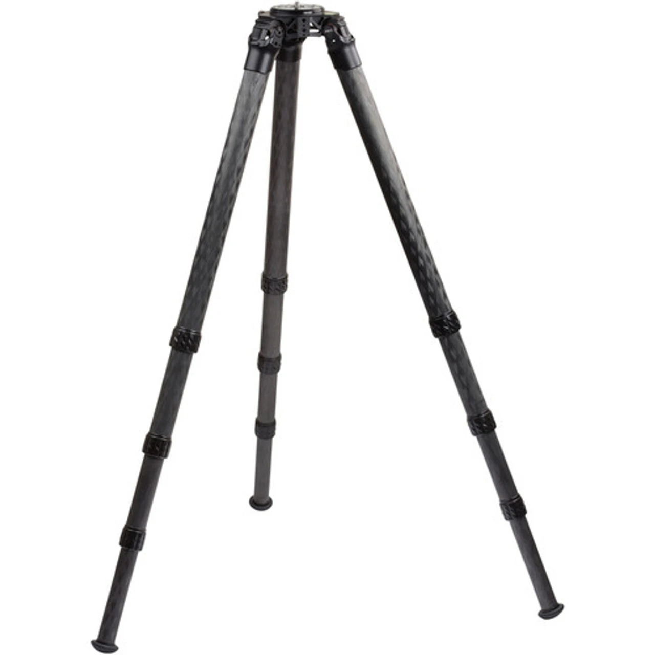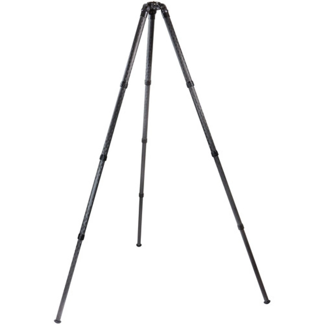 This TR424L 42mm Series Pro-Stix Carbon-Fiber Tripod from ProMediaGear supports up to 125.0 lb, measures 26.3″ when folded, and includes a tripod top plate with a 3/8″-16 mount. Each of its 4-section legs has a maximum diameter of 42mm. They also feature an independent spread, a 3-position angle lock, quarter-turn twist locks for rapid deployment, and a rubber foot to enhance stability on a wide variety of surfaces. Together, the three legs can be extended and spread to raise the tripod from a minimum height of 6.7″ to a maximum height of 77.0″. For use on soft and uneven soil, each of the rubber feet can be unscrewed to access a stow-away metal spike which can be fastened to the bottom of its corresponding foot.