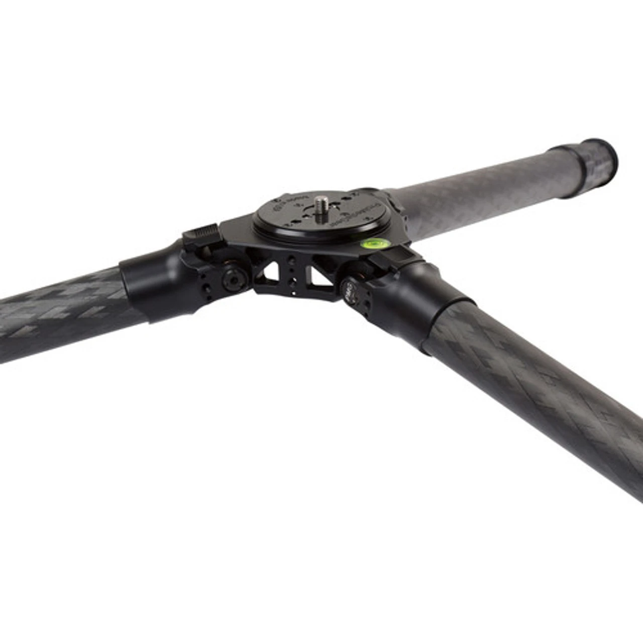 Tripod heads, cameras, lenses, or sport optics that are compatible with a 3/8″-16 mount can be connected to the tripod’s top plate, which is intended to be clamped onto the tripod’s aluminum-alloy head. The head features a durable truss design that minimizes weight along with the carbon-fiber construction of the tripod legs. To further secure the top plate while in use and prevent it from accidentally sliding off when the tripod head’s clamp is opened, the head also includes a cam lock with a push-button release.