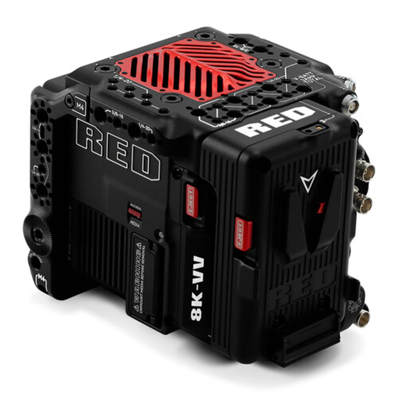 Compact, fast, and full-frame, the V-RAPTOR 8K VV Camera Production Pack (V-Lock) is RED DIGITAL CINEMA’s impressive introduction to their new DSMC3 platform. Sized only slightly larger than the KOMODO but boasting a new sensor, the V-RAPTOR offers multi-format capture in 8K VistaVision, 6K Super35, 4K, 3K Super16, and anamorphic options. This versatility enables you to adapt your format from project to project to suit your choice of a variety of pro cine or still photo lenses. The V-RAPTOR’s RF lens mount can be used with numerous lens adapters, and it has a locking ring that provides additional security for use with heavier lenses and steady, wide-open capture. In response to user feedback, RED has added a right-side user interface that brings control to 1st and 2nd ACs right at the camera. Dual 12G-SDI outputs, resolutions including 16-bit REDCODE Raw at significantly higher frame rates, 1080 streaming, 17+ stops of dynamic range, and phase-detection autofocus (PDAF) further boost the V-RAPTOR’s suitability for a range of production styles.