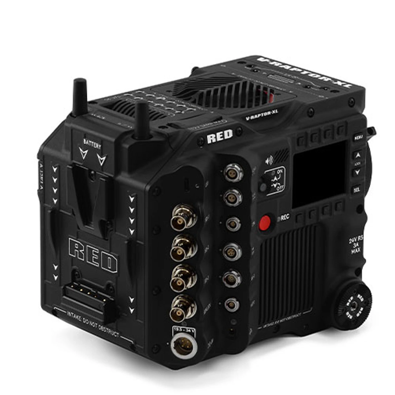 The RED DIGITAL CINEMA V-RAPTOR XL 8K VV DSMC3 Production Pack (V-Mount) offers up to 8K VV multiformat video capture, REDCODE raw and Apple ProRes recording, and 1080p streaming in a streamlined form featuring an array of interfaces suitable for high-end crew use. This follow-up to the V-RAPTOR incorporates internal ND filters and an interchangeable lens mount, and it includes an ARRI PL mount. Its industry-standard interface incorporates three 12G/6G/3G-SDI outputs, both 12 and 24V power outputs, timecode and genlock ports, and a V-mount battery plate.
