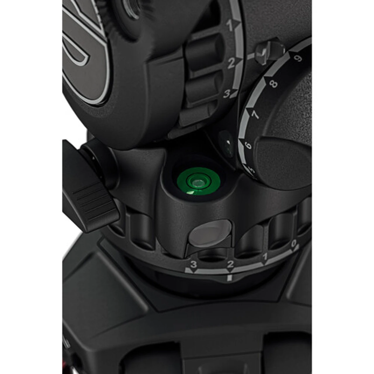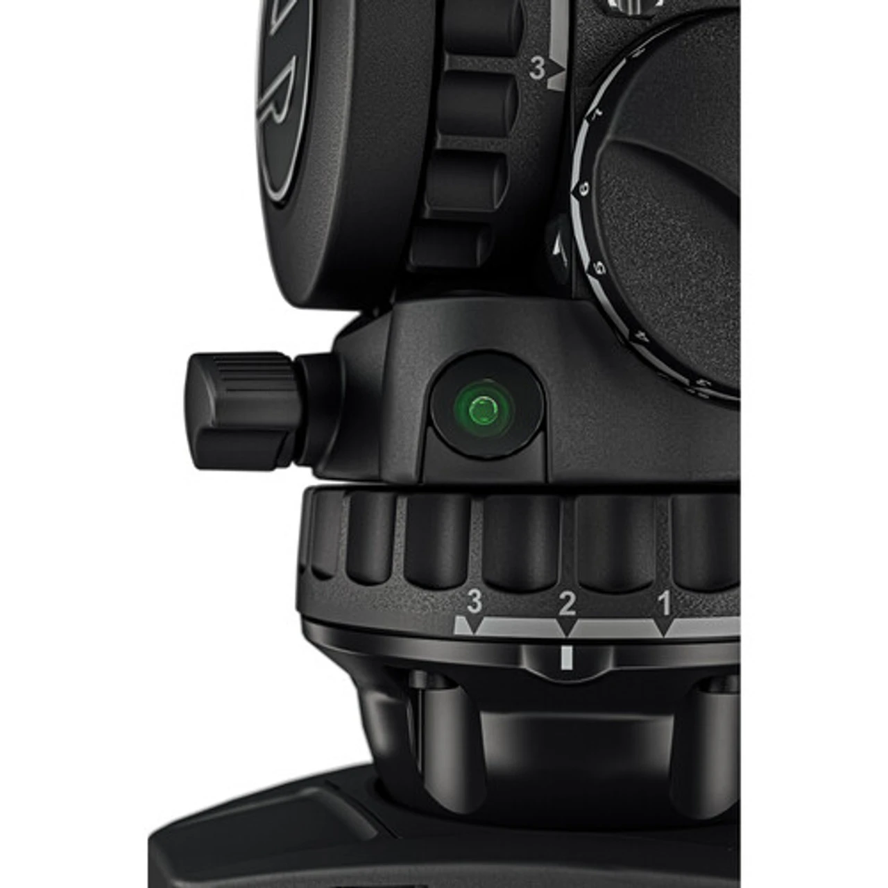 The PrismBubble level system is pressed once to illuminate the bubble level to be illuminated or pressed twice to light up both the bubble level and the drag settings, a boon when working in darker environments. The bubble level also has a built-in prism, enabling you to more easily level the head when the legs are at set at maximum height or an awkward angle.