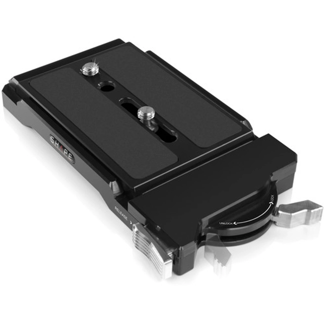 SHAPE’s Touch & Go Quick Release System is designed to be compatible with the Sachtler 35, 120mm OConnor Euro, and Ronford Baker RBQ Touch & Go systems, allowing for swapping to and from these systems. It consists of a Receiver Base and Touch & Go Flying Plate. The plate can be attached to the bottom of many cine cameras and the cameras then mounted on the Receiver Base or the bases of the above third-party systems. The plate can likewise be secured on the bottom of camera rigs.