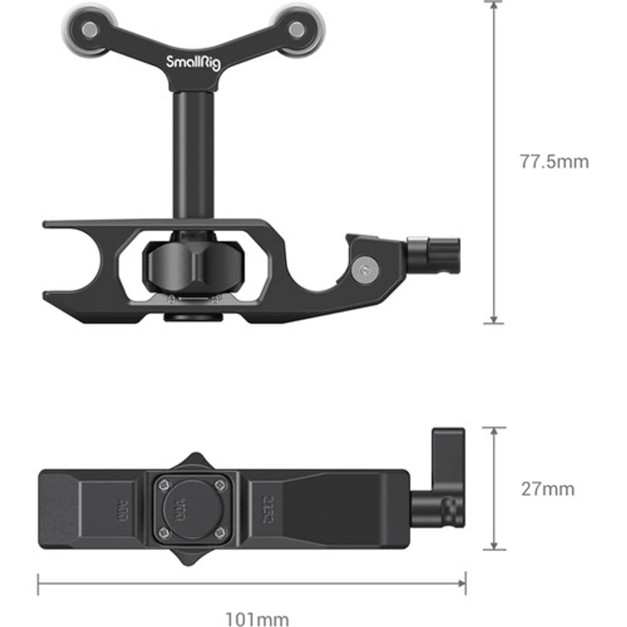 Use this aluminum 15mm LWS Universal Lens Support from SmallRig to support a long camera lens when your camera is mounted on separately available 15mm LWS rods. The 15mm LWS rod ports have a half-open design, so the support can quickly mount and unmount. The center column attaches to a Y-support for a lens between 73 and 108mm in diameter, and it offers 1.2″ vertical adjustment.