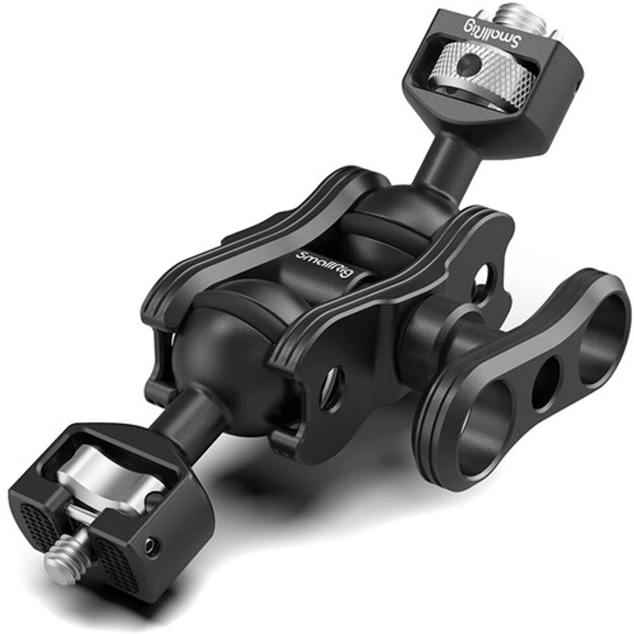Featuring a ball head at each end, the 5.5″ long Ball Head Clamp with 3/8″-16 ARRI Accessory and 1/4″-20 Screw Mounts from SmallRig can be used to mount an accessory on your camera rig at almost any angle. The clamp can support loads up to 11 lb, and the ball head ends are interchangeable.
