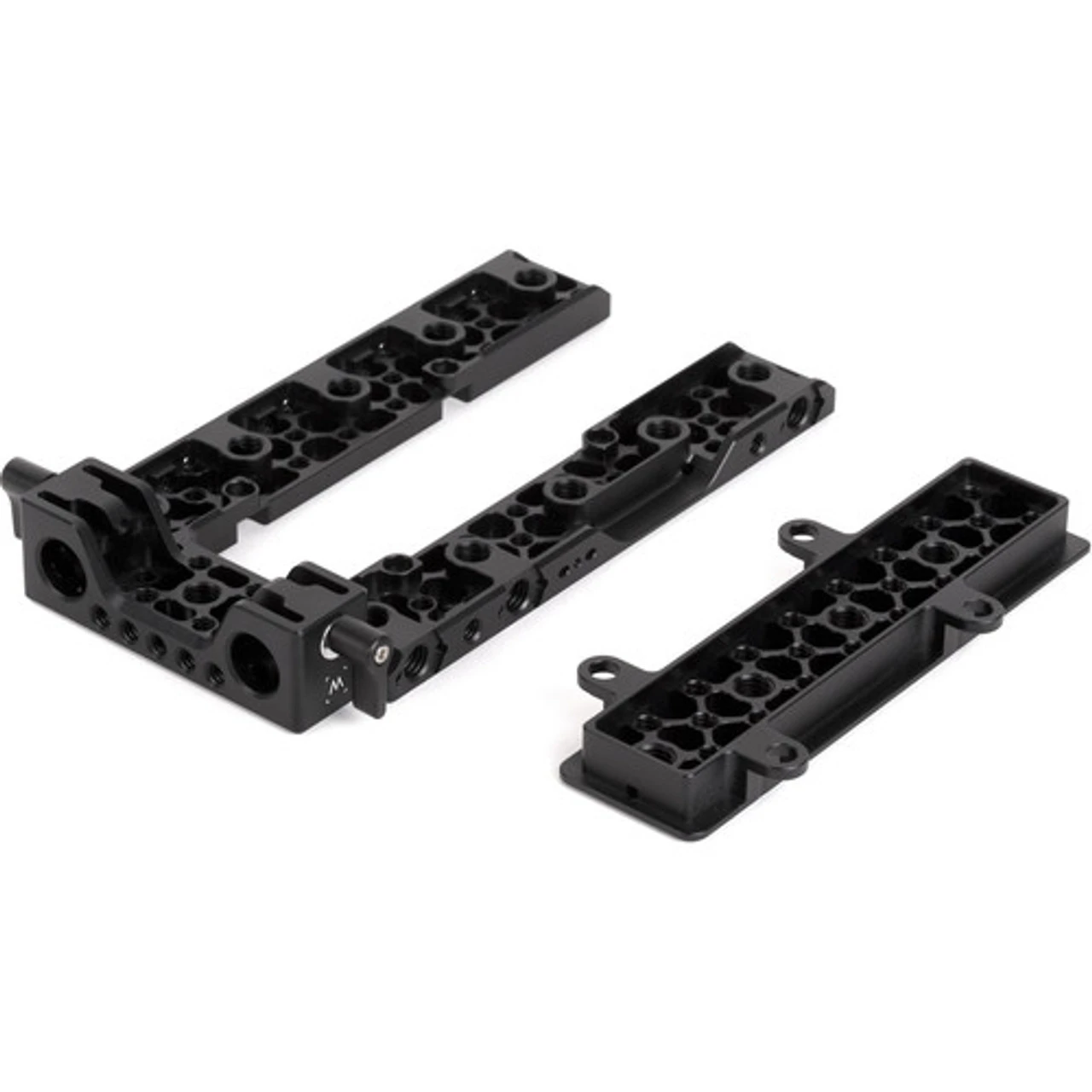 The Wooden Camera Top Plate for Sony FX9 attaches to the top of the camera, contouring its shape, and provides 1/4″-20 threads, 3/8″-16 ARRI accessory mounts, and a 15mm LWS rod mount. A component in the center of the plate can be removed to allow attaching the camera’s original top handle with full communication with the camera. The Sony XDCA-FX9 Extension Unit can also be attached to the rear of the camera without the plate getting in the way.