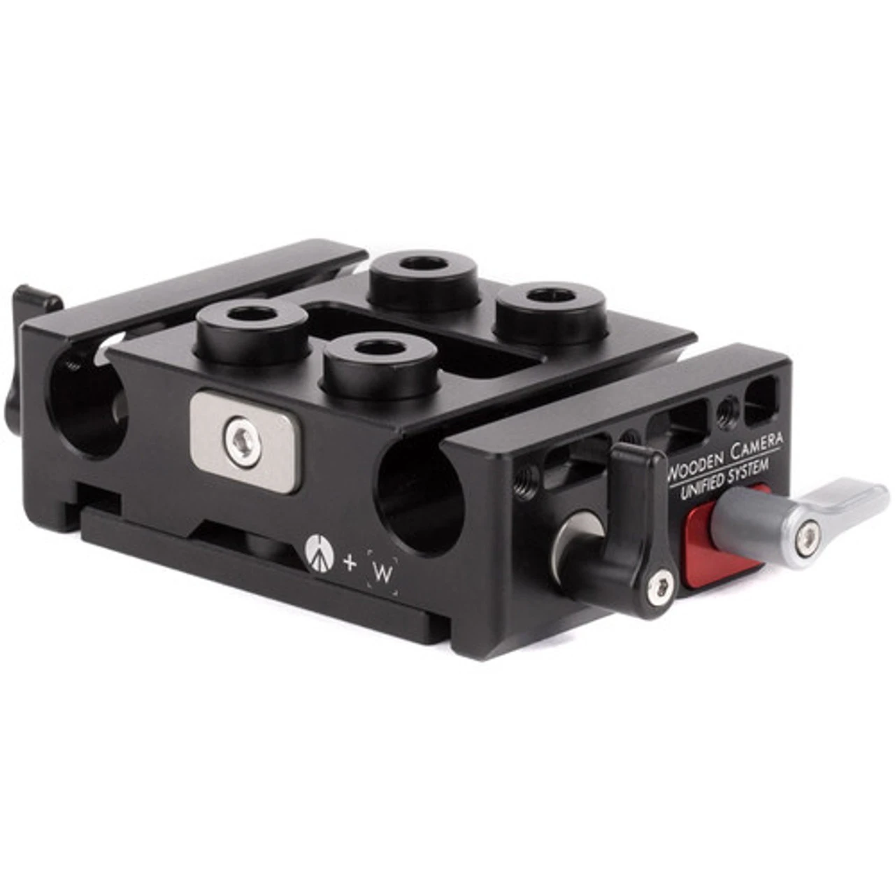 Expand the capabilities of your Wooden Camera Unified DSLR Cage with the Unified DSLR 15mm Baseplate. The baseplate itself holds 15mm rods at the correct placement to comply with the lightweight support (LWS) standard. Four height-adjustable posts secure to the base of the small or medium variations of the Unified DSLR Cage to ensure the correct optical axis height (the large variation of the cage has its own built-in rod clamp). The bottom of the baseplate has a dovetail clamp quick release enabling convenient tripod mounting. The dovetail clamp complies with the ARRI dovetail standard and can be easily secured to all dovetail plates of that standard, as well as Wooden Camera’s own dovetails and shoulder rigs. Having multiple quick release options in a single system enables you to remove the entire rig from the tripod to go handheld, or just the camera from the rig for a minimalist setup.